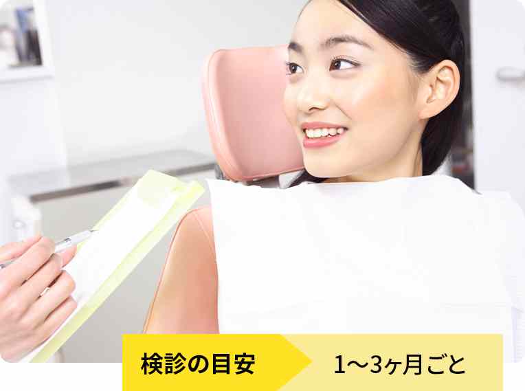 詰め物や被せ物などの人工物は、歯との間に隙間が出てくることがあるため、2~3ヶ月ごとの検診が理想です。こちらは歯の検診と同時に行います。